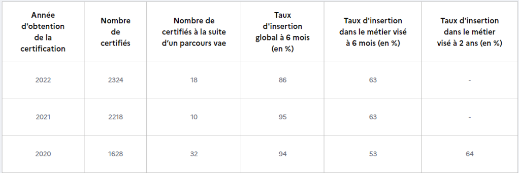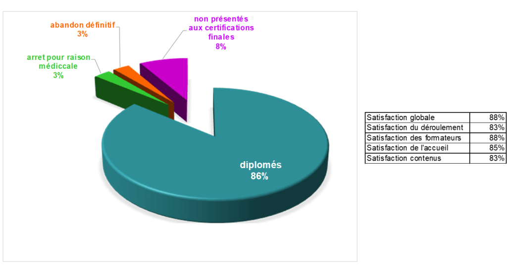 En tenant compte des abandons sur les 4 CQP organisés par notre OF, ci-dessous les performances de nos candidats